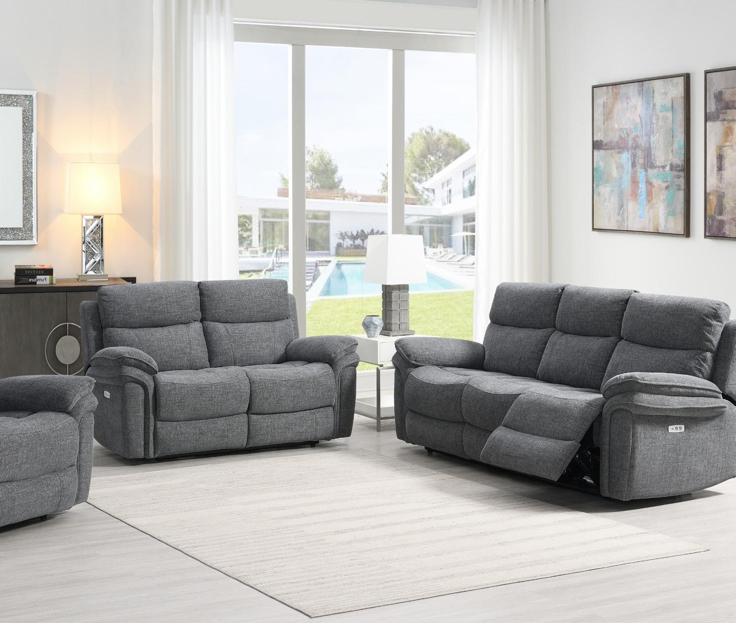 Introducing the Harrow Electric Reclining Suite from Annaghmore, where modern design meets ultimate comfort. Available in three on-trend colours – Dark Grey, Light Grey, and Black – each piece is crafted with luxurious fabric featuring a subtle speckled detail running throughout for added texture and style. Experience ultimate relaxation at the touch of a button, with smooth electric reclining for effortless comfort. Plus, the built-in USB port keeps your devices charged and within reach, making this suite not only stylish but also functional for modern living.