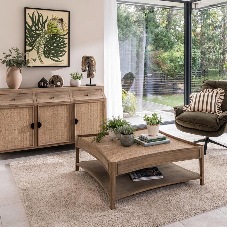Lille will launch at JFS 25, one of a number of sophisticated new collections by Bluebone for 2025. It comprises six living room pieces in a natural oak, with a contemporary french twist. Rattan panels and matt black hardware complete the understated chic design.