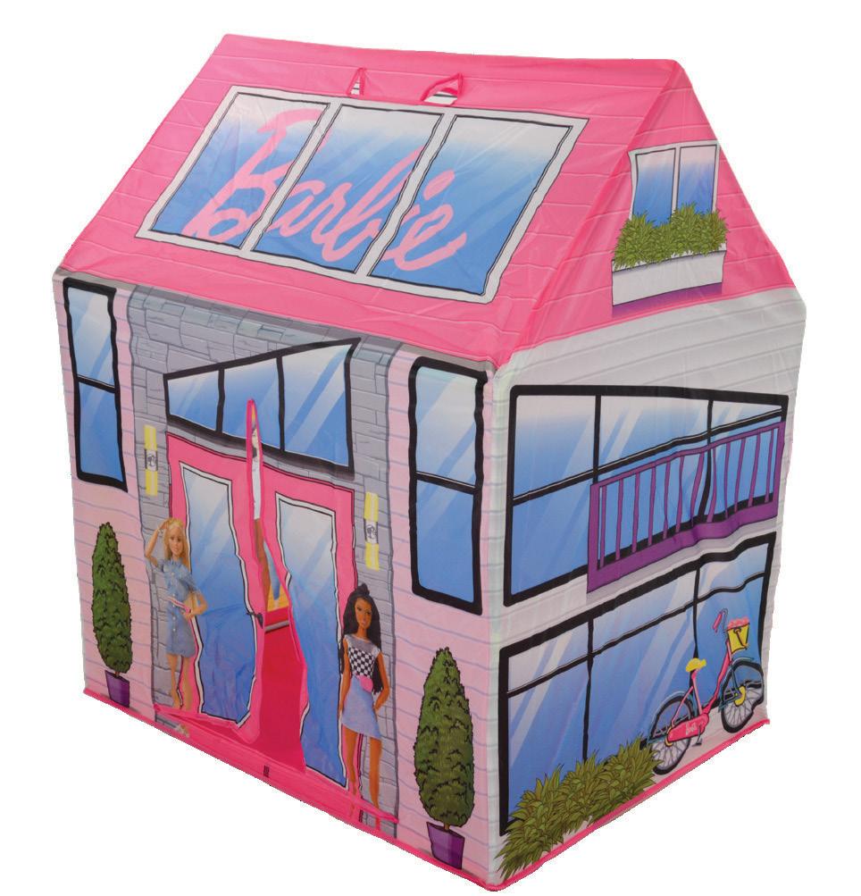 The Barbie Play House Tent, based on the best-selling Barbie Dreamhouse play set, is designed for indoor and outdoor use with an integrated floor, water-resistant coating, closed top and tie-back doors, this makes the perfect open play space or hideaway for young children aged 3+.
