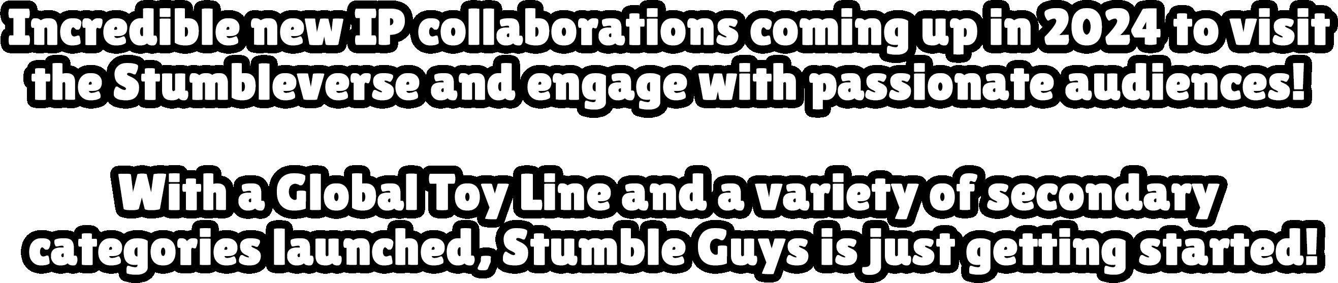 Stumble Guys is expanding across the entertainment landscape, from the digital to the real world, with a new line of toys and more ways to play the global game sensation. Building upon a community of tens of millions of players, the franchise is ready to line up additional partners and enter new categories to complement the video game and the new master toy line. Scopely, the developer and publisher of Stumble Guys, offers brands access to a dedicated audience through in-game experiences and physical merchandise. The community-driven and highly social online battle royale game attracts a large global audience of Gen-Z and digitally native players, while continuing to extend into new demographics and markets.