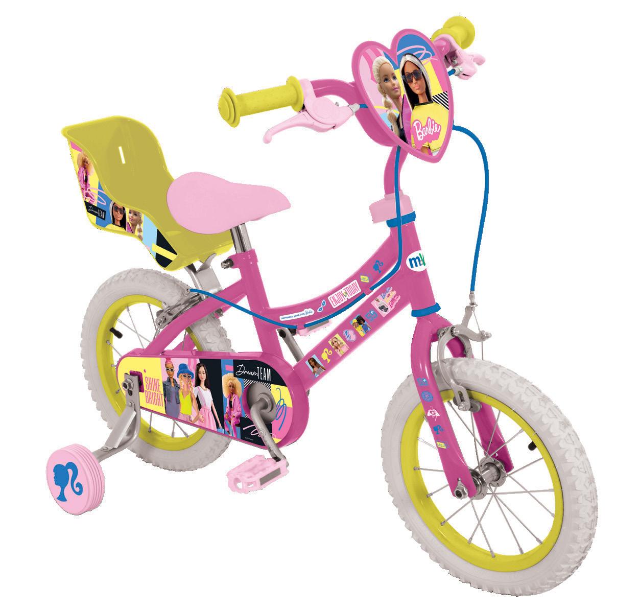 MV Sports has a newly refreshed Barbie range of wheeled toys which feature bright, vibrant colours, charming character graphics and inspirational slogans over a variety of scooters, bikes, tents, skates and much more. The best-selling 14” Bike features motifs of Barbie and her friends, exemplified by a bespoke heart-shaped plaque. At the rear, users will also find an integrated doll carrier, complete with character graphics. Suitable for kids aged 3+, this bike is ideal for children who are close to mastering riding on two wheels with its easy-to-remove stabilisers. The bike’s spoked wheels and pneumatic deep tread tyres offer a strong yet comfortable ride with excellent grip.