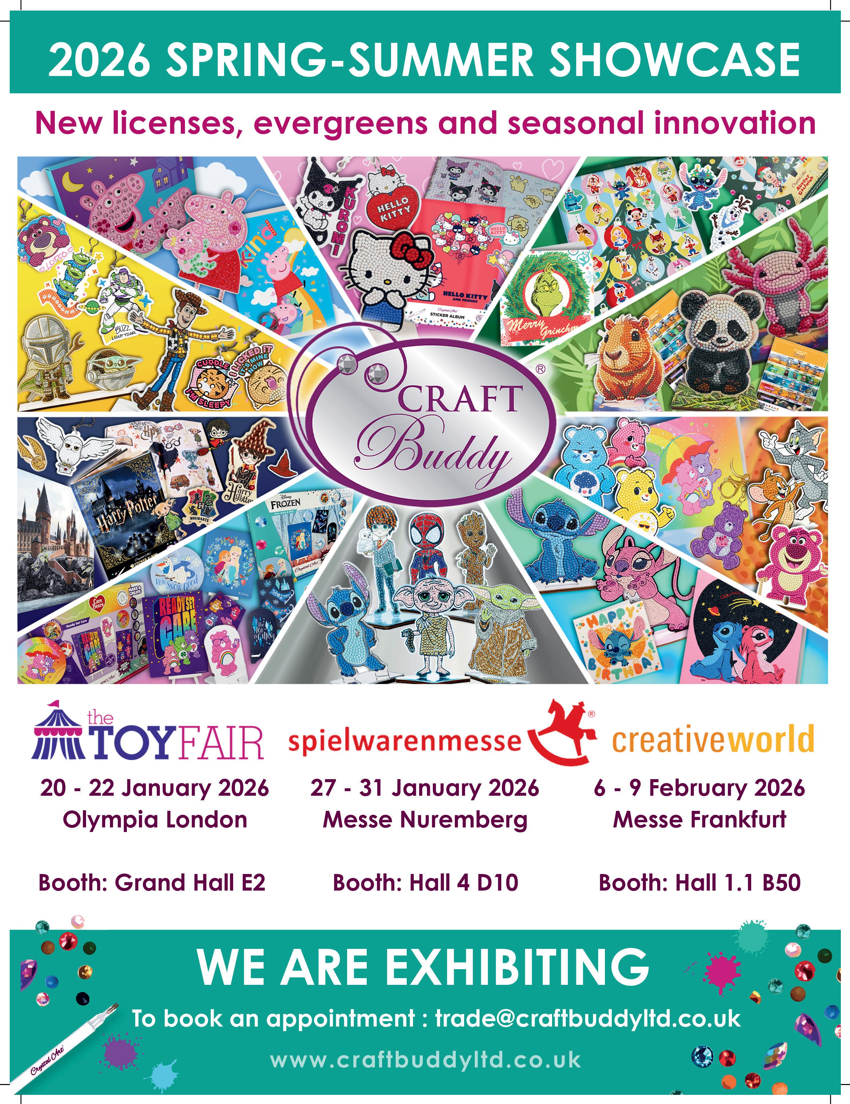Attendees are invited to visit Craft Buddy’s Spielwarenmesse stand to explore the full spring/summer 2026 collection and discover how the supplier continues to set trends in creative play, craft and collectability.