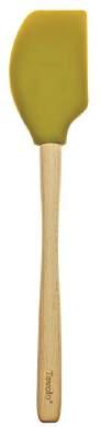 Edges are tapered to a sharp point to scrape sides clean. Diswasher safe for detachable silicon head. Handwashing recommended for the wooden handle.