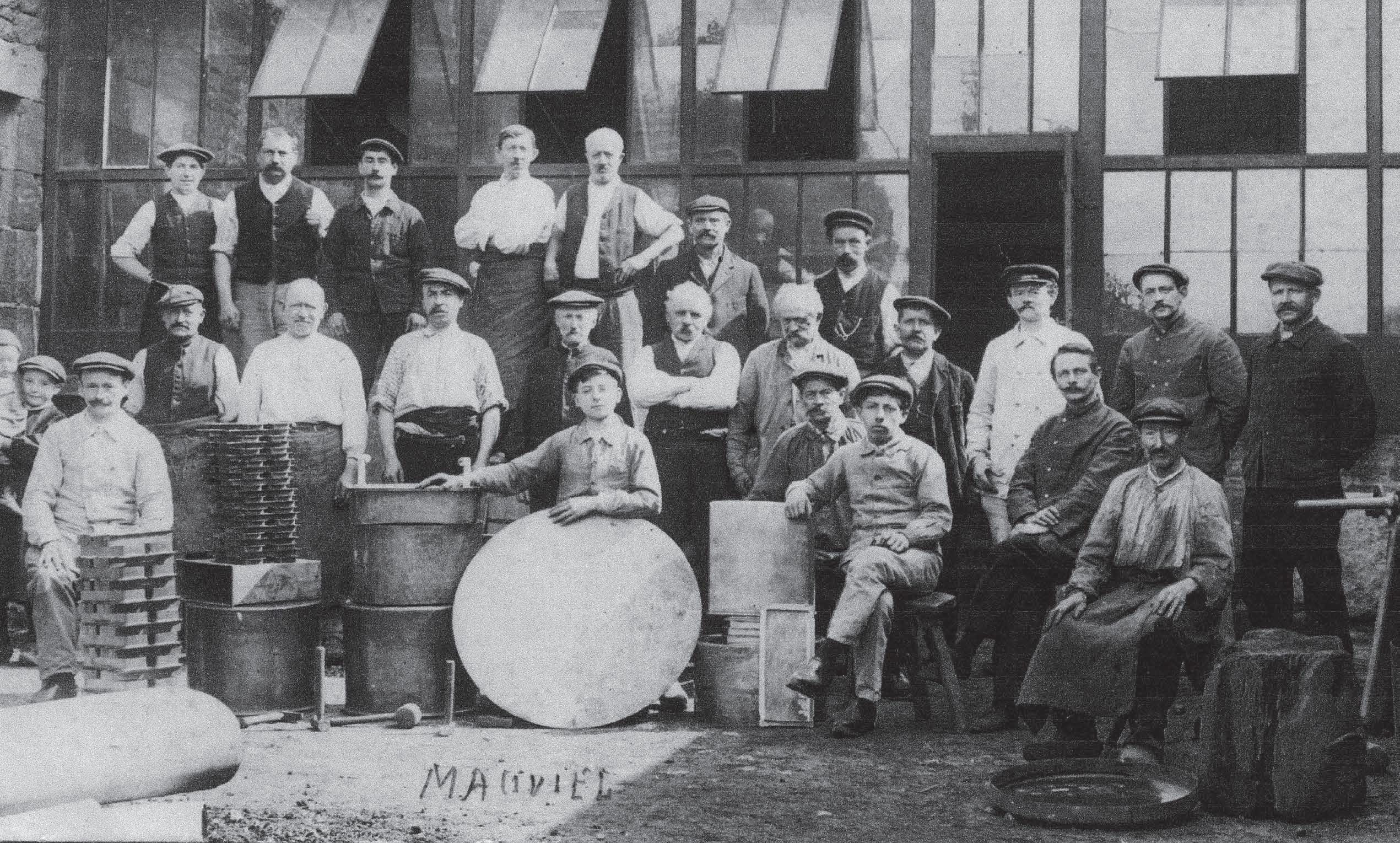 Ernest Mauviel installe la manufacture à Villedieu les Poêles en Normandie.