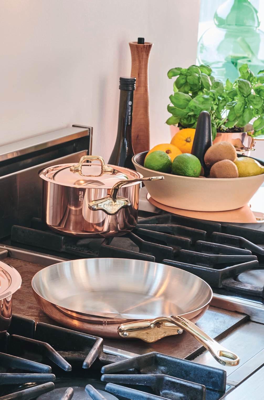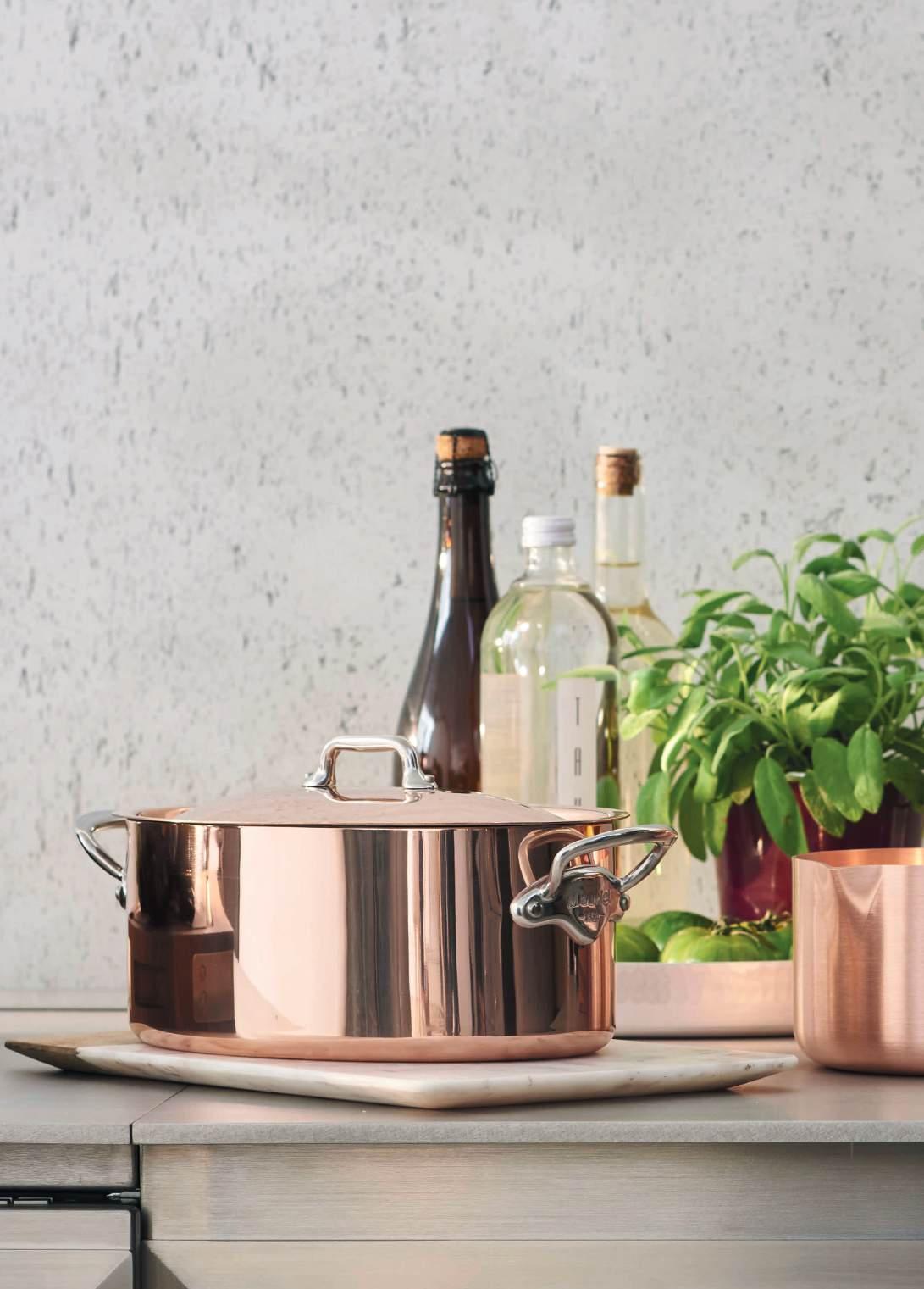 Le cuivre poli associé à l’inox renouvelle le plaisir de cuisiner. La collection se décline en deux épaisseurs, selon l’expertise de l’utilisateur : une épaisseur de 1,5 mm pour une utilisation classique proposée dans la ligne M’Héritage 150 et une épaisseur de 2 mm pour les professionnels avec la ligne M’Héritage 200.