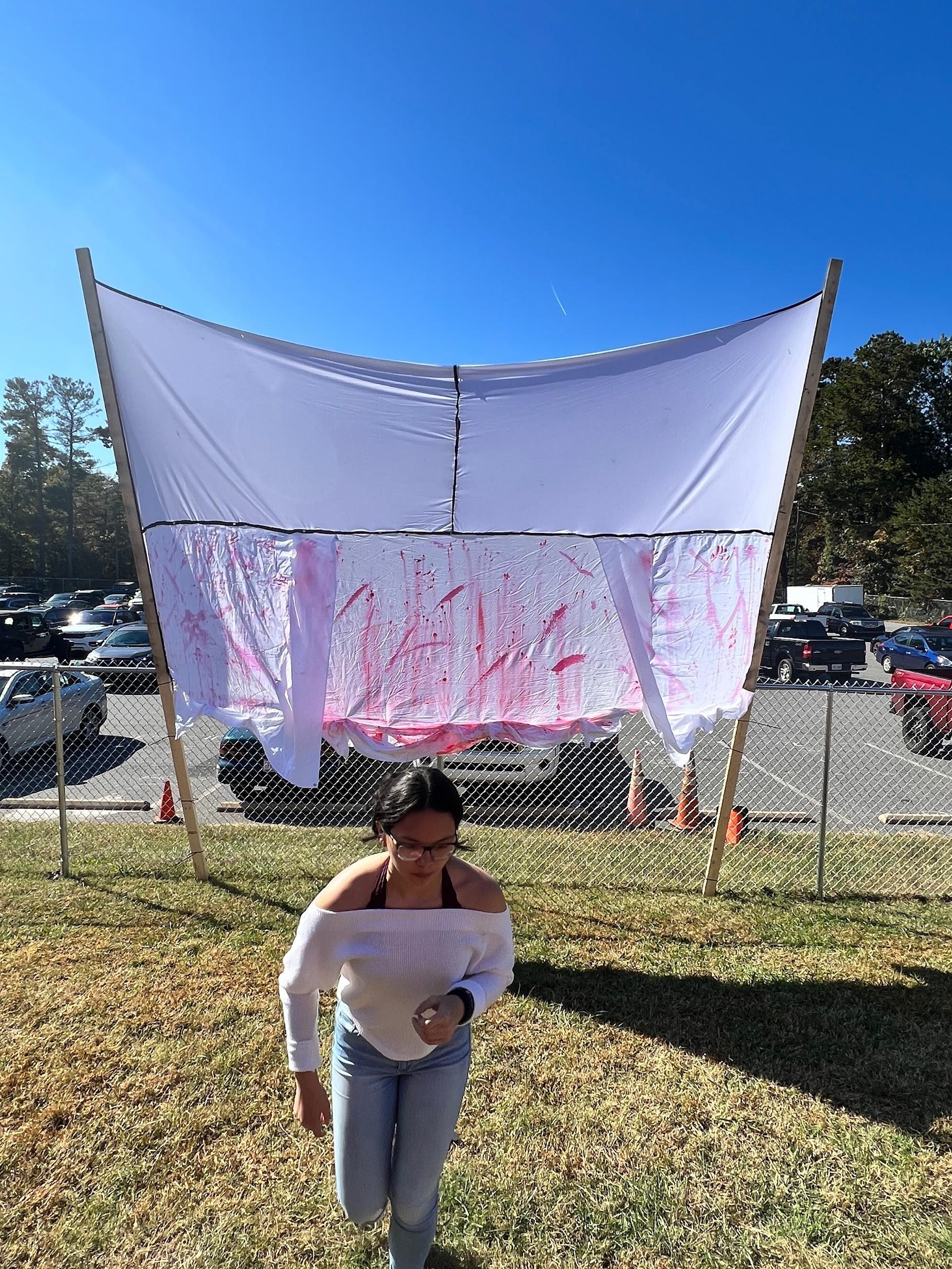 - Possible framing for the screen, would add weight, but increase stability and further prevent bubbling Backprojection would illuminate the solid Black line stitching the two projector screens together, front projection would do the same but with white taping, it would midgate the shadow