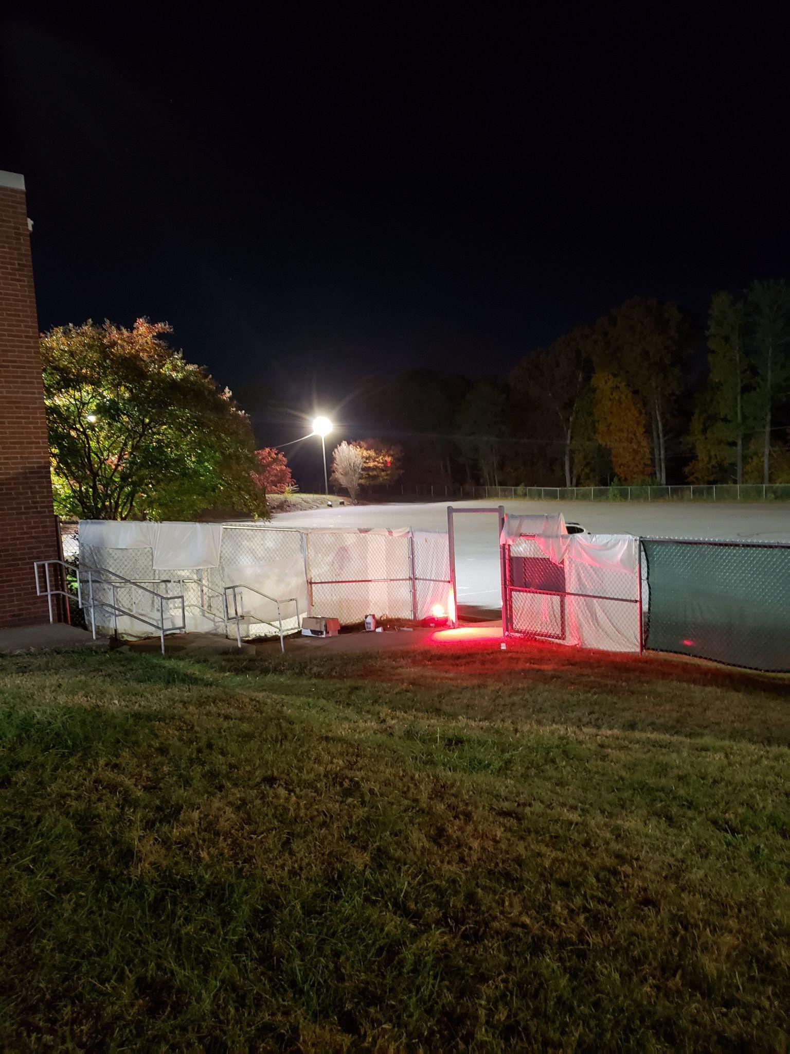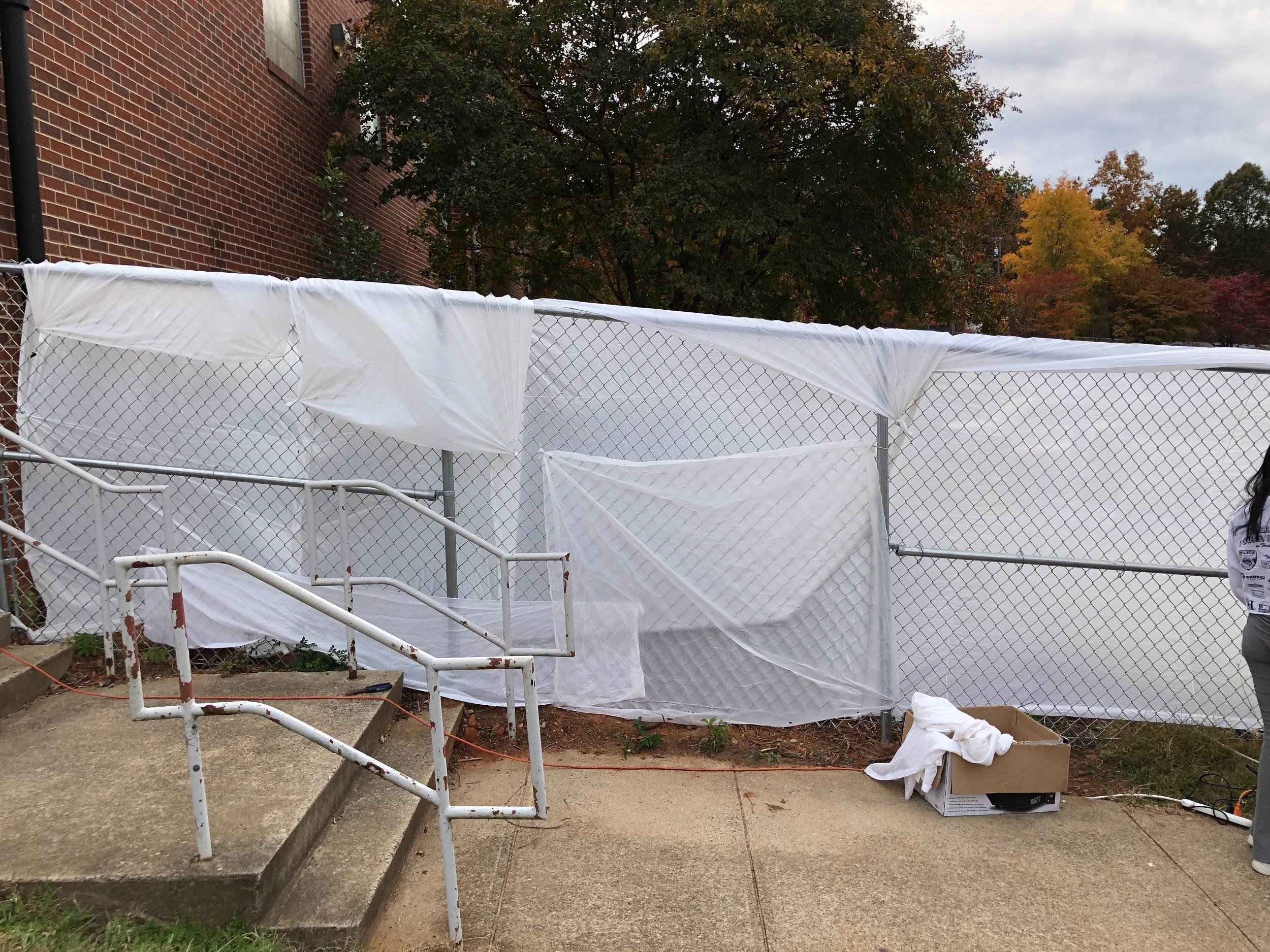 The perch will be a spray painted PVC pipe that is zip tied to the fence where the creeper can rest his arms while perched We have the PVC pipe. It needs to be spray painted black, as well as we need to determine if we will have enough extra zip ties from the projector screen