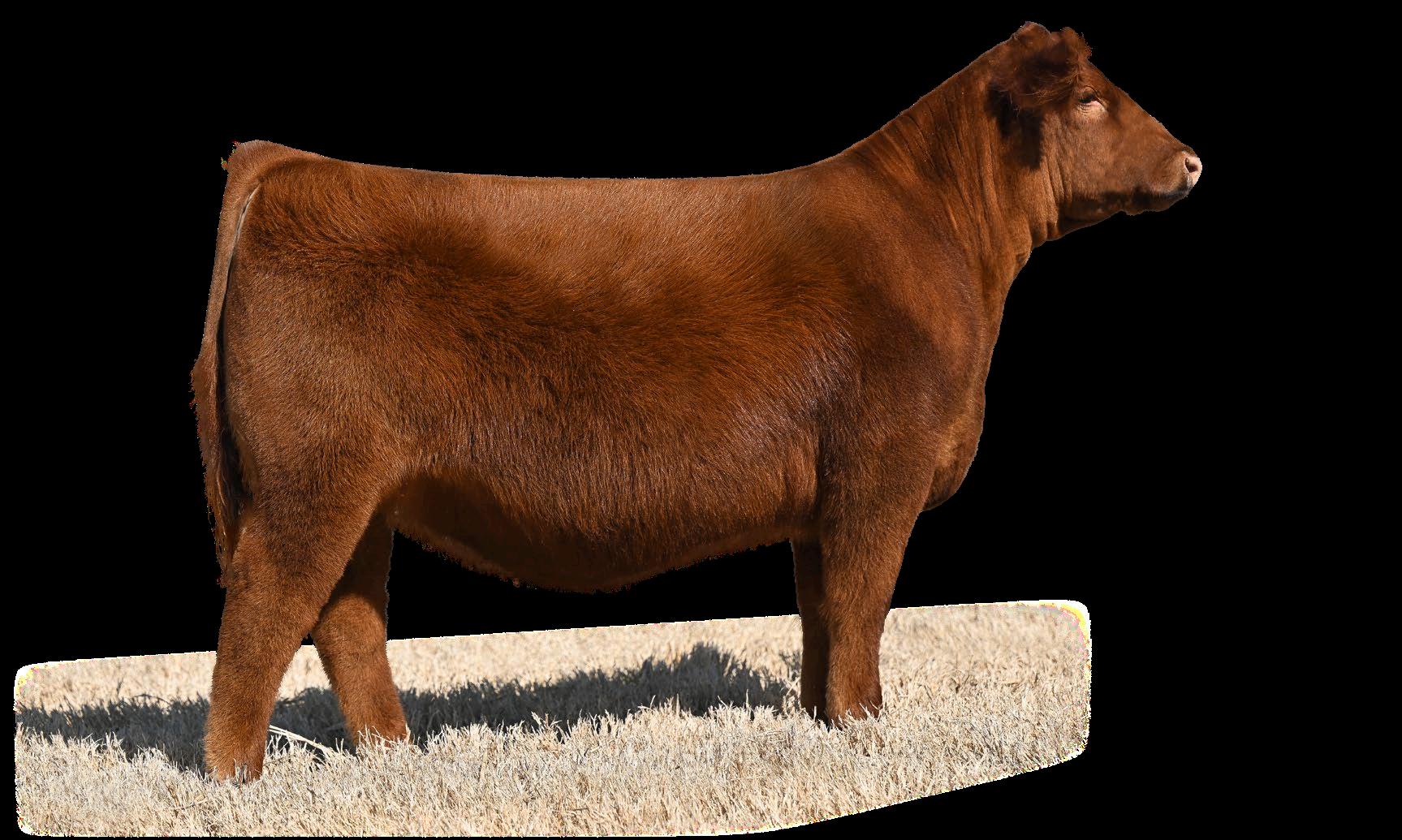• Here is a chromed up bull that is level designed and stout hipped, while offering added length and extension up front. Additionally, he is powerful over his top and out of his hip, while going to the ground with width and dimension.