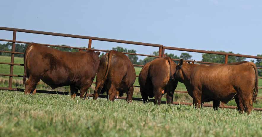 The Lacy Family’s legacy in seedstock is one I have had the privilege to be familiar with for nearly thirty years. Though the operation has existed much longer, I still remember the lessons from those who interacted with Dale Lacy about fertility, udder quality, and sustainable longevity. The stories of Dale traveling with industry legends like J.W. Brune to the nostalgic Beartooth Ranch in Montana for the Annual Production Sale are always enjoyable to hear. J.W. praised Dale’s ability to det ect health issues, sort cattle on foot, and know when to push or pull nutritionally. Dale was one of the great cowboys of the industry and has a place reserved for the Missouri Cattleman’s Hall of Fame when it’s established. What Dale started and how he approached it is rare in today’s seedstock world. Still, it’s the generational operations like Lacy’s Red Angus that uphold the tough, cowboy logic from which all significant seedstock operations originate. For these reasons, you find yourself reading this sale catalog and considering investing in this historic program as its genetics prosper for many in the Fescue Belt and beyond. The cattle represent generations of careful selection and trait-based sorting that determine success or failure in a cow/calf operation, with Dan Lacy carrying forward the founding principles with a slight genetic twist to keep this program modern while staying true to what works for his customer base and market demands.