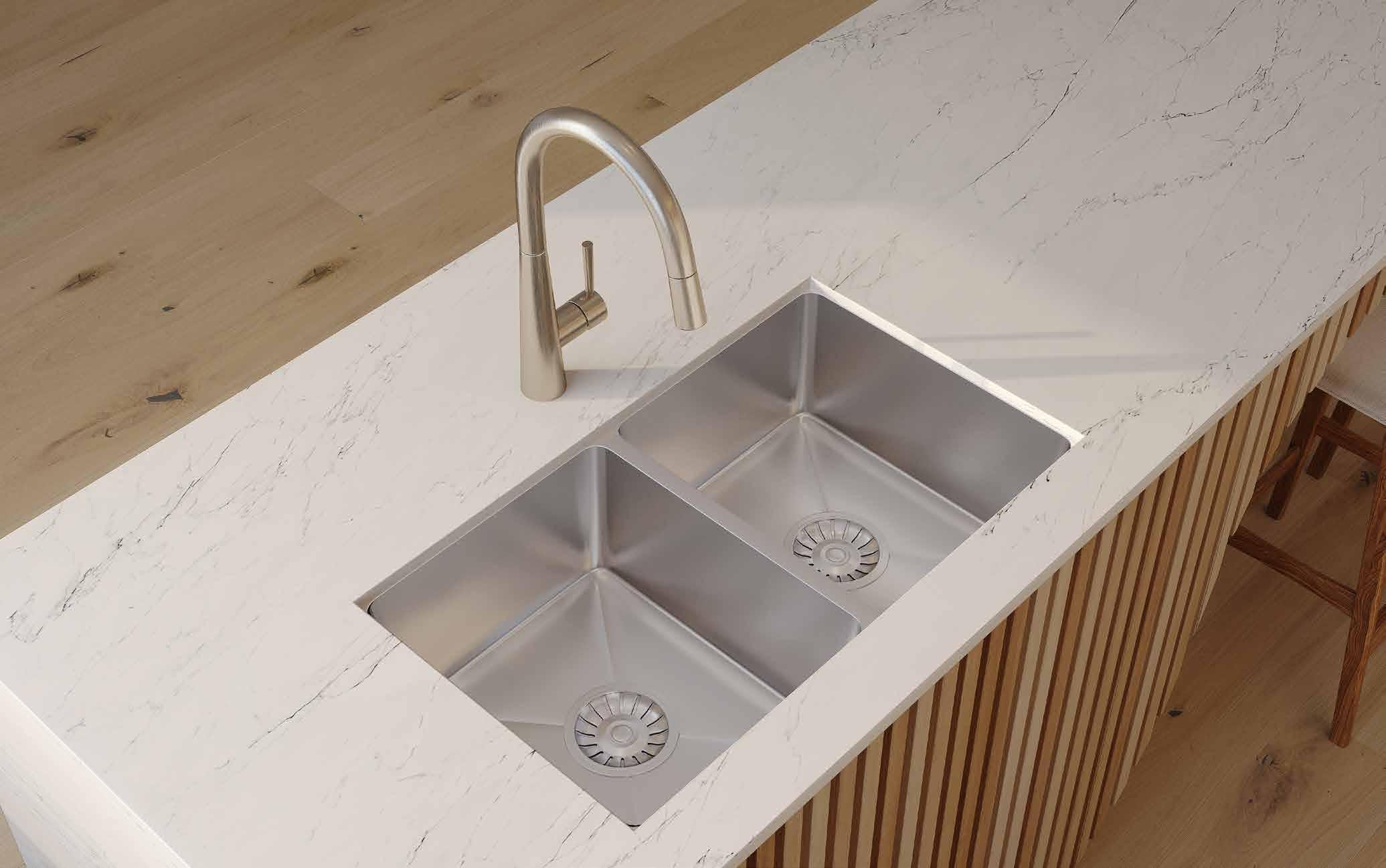 Undermount tubs are installed underneath the counter, which creates a modern look and maximises bench space. You’ll need a cut-out in your bench of exactly the right shape and size. This can only be achieved with a stone benchtop.