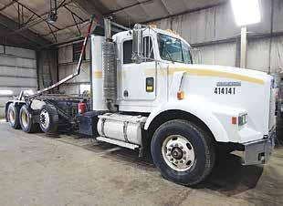 1987 International 2574 tandem roll-off truck, 16-ft. steel tub, 400 Cummins engine. $10,000