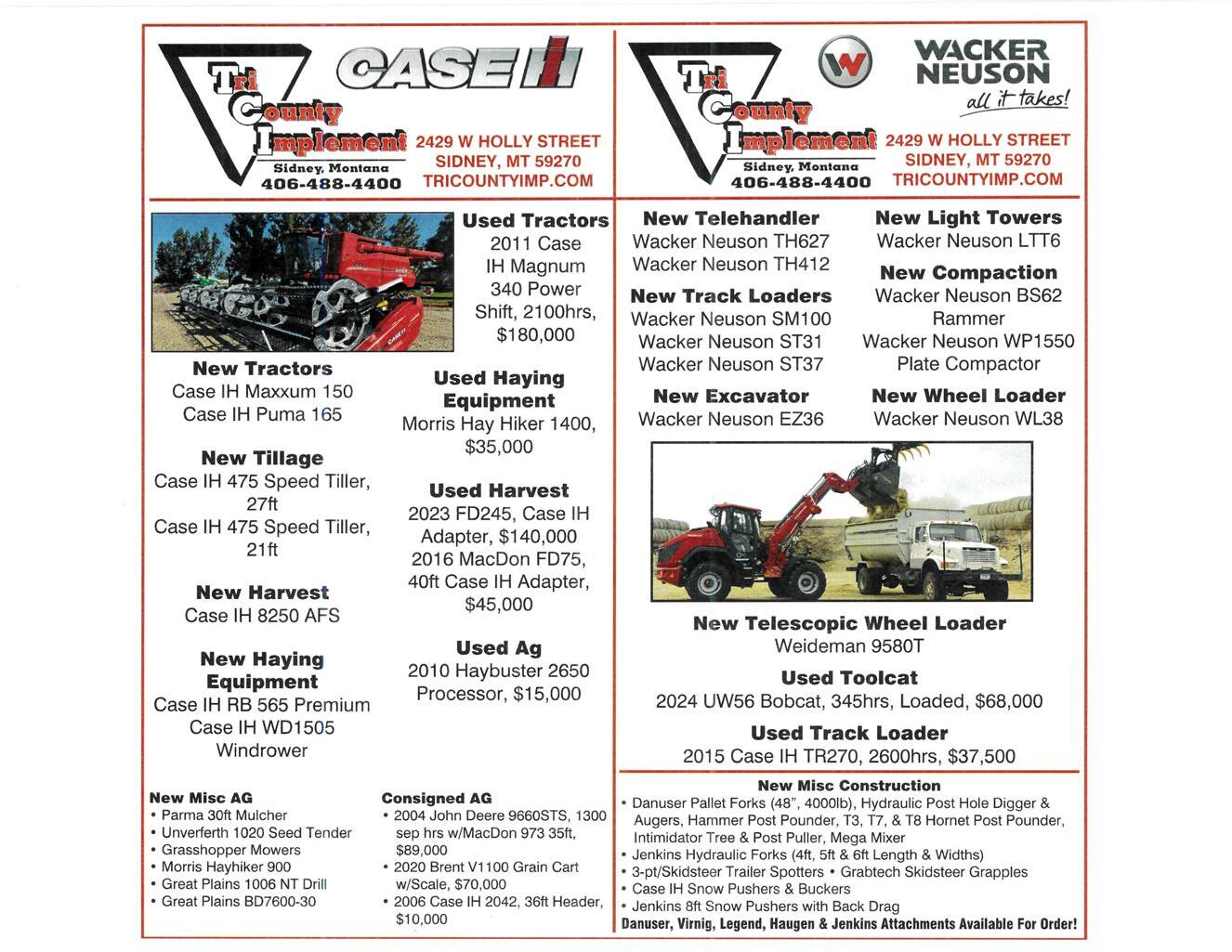 Mar 23 - Apr 8, Ascent Auction Services, Montana Statewide Spring Equipment Auction, Online A5