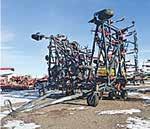 2012 Case IH Flex Hoe 700 air drill with Precision Air 3430 TBT cart, 70-ft., 10” spacing single shoot, walking beam rubber tire packers, 4” spread carbide opener.