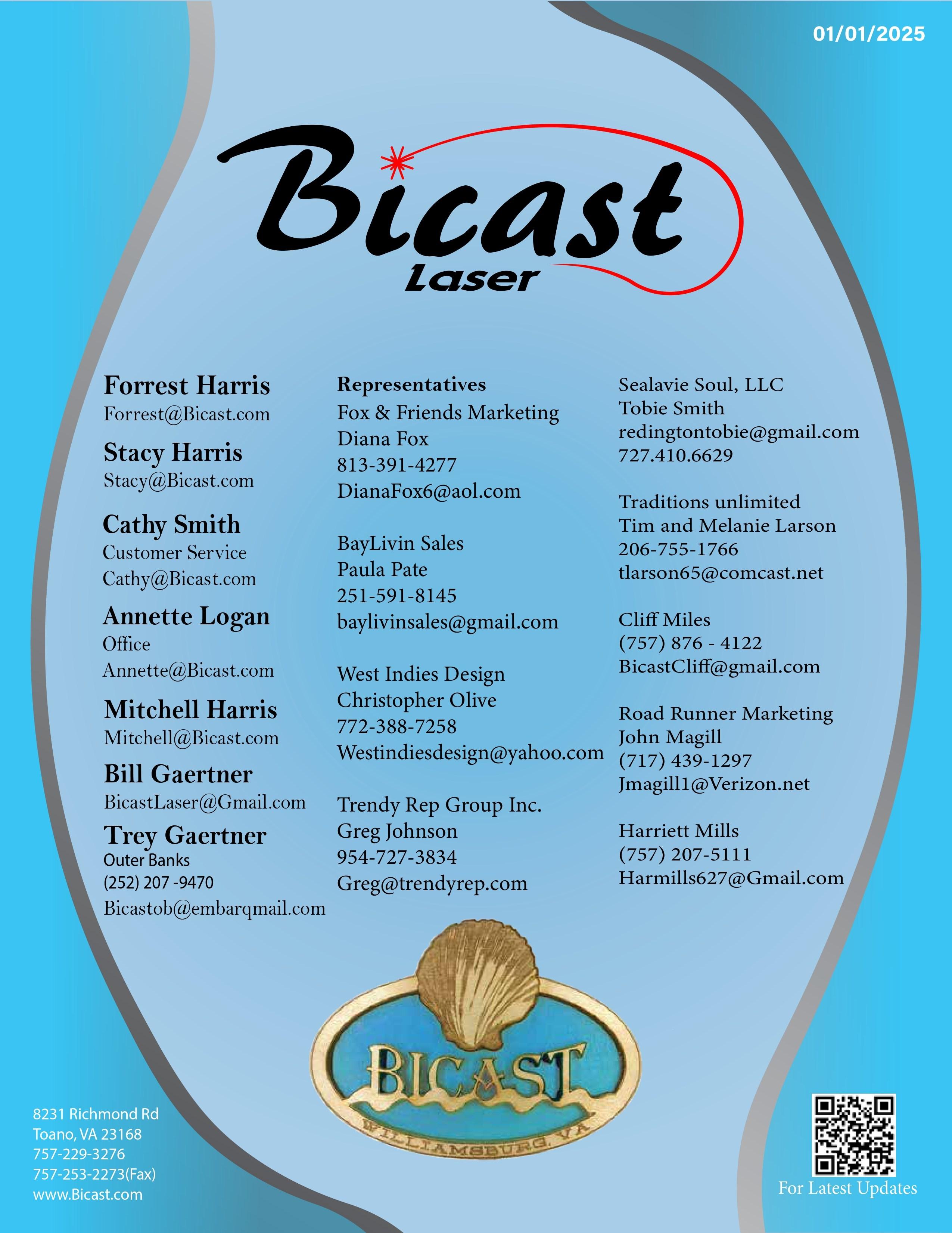 Bicast Inc. is a family business based in Williamsburg VA. We design, manufacture and hand assemble our own products with the utmost care to provide our customers with unique souvenir items that really sell! Our low minimums make sense. Having been in business for 30 years we know what works, and we are hoping to be working with you 30 years from now!