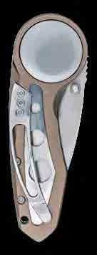 16 1-800-221-7074 | All items shown at 70% of actual size. Cameo emblem is 15.5mm | (*) See page 22 for Packaging Legend 135 - $7.50 (C) Cameo Folding Knife w/clip Stainless Steel and Aluminum Knife details: see 134 134 - $10.00 (C) Cameo 3 Function Tactical Knife with clip. Includes seat belt cutter and glass breaker Stainless Steel and Aluminum Open length: 5.5 in. Closed length: 3.6 in. Weight: 3.10 oz. Blade length: 2 in. Thickness: 0.11 in. Material: 420 Stainless Steel Blade-HRC: 53-56HRC Finish: Blacken Grind: Hollow Griind Reverse tanto point Blade: Partially serrated Handle Material: Aluminum Lock Type; Lock Liner 137 - $4.00 (H) Cameo Bottleopener Key Ring Pewter Finish 108 - $5.50 (H) Cameo Bottle Opener Whistle Pewter Finish 133 - $5.00 (H) Cameo Divot Tool K/R with Snap Ball Marker Pewter Finish 110 - $2.25 (C) Cameo Golf Ball Marker Pewter 136 - $3.50 (C) Cameo Hidden Key Knife Key Ring w/clip Pewter Finish & Stainless 050 - $3.50 (K) Cameo 2.25 oz. Shooter 155 - $3.50 (K) Cameo 2 oz. Hotshot 052 - $3.25 (K) Cameo 2.25 oz. Square Shot 051 - $3.50 (K) Cameo 2 oz. Round Shot 151 - $5.00 (B)