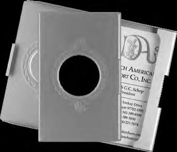 24 CUSTOM COINS 906 Bright Gold 906 Bright Silver 907 Matte Gold with enamel fill 906 1 Finish - $2.50 907 w/ Enamel Fill - $2.75 906 Antique Copper 520 - $5.00 Coin Display Membrane Frame 40mm coin shown not included. 907 Pewter w/Enamel Fill 521 - $5.50 Coin or Ornament Display - Large Membrane Frame 1-800-221-7074 | (*) See page 22 for Packaging Legend | All Coins shown at 100% of actual size. All Packaging is at 75% of actual size