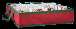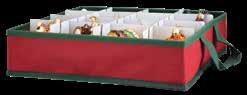 • Adjustable dividers – fits 64 3” ball ornaments and can accommodate larger figural glass ornaments