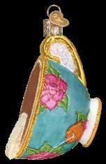 Each figurative glass ornament produced by Old World Christmas is hand crafted in age-old tradition using the same techniques that originated in the 1800s. Molten glass is mouth-blown into finely carved molds made exclusively for Old World Christmas, before a hot solution of liquid silver is poured inside. The ornaments are then hand-painted and glittered in a series of labor-intensive steps to achieve our beautiful creations.