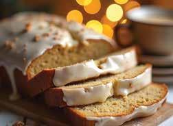 Warm banana bread fresh from the oven, enriched with a hint of cinnamon, is draped in a luscious, creamy vanilla icing for an irresistibly cozy and sweet indulgence.