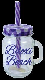 38731 • Glass Mini Mason Jar Shot w/Straw & Purple Gingham