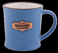 In-House Imprint Engraved Plaque Program 39003 • Stoneware Blue Ice Glazed Mug w/Plaque - 12 oz