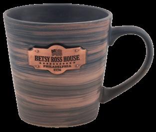 38935 • Brown Stoneware Streaked Mug w/Plaque -