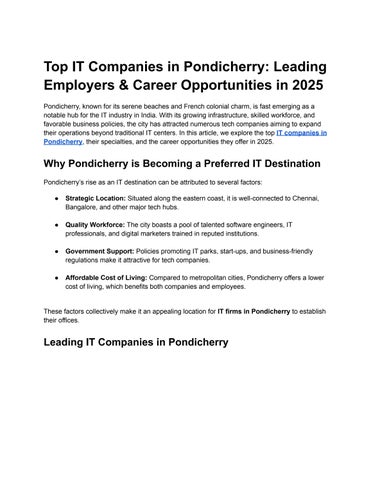 Top IT Companies in Pondicherry: Leading Employers & Career Opportunities in 2025