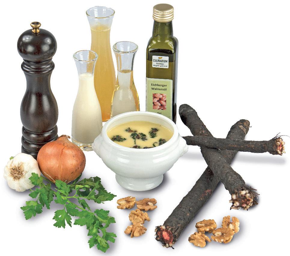 DREISCHIIBEKÖNIGS SUPPE REZEPT 1 Zwiebeln und den Knoblauch fein hacken 2 Schwarzwurzeln schälen und grob schneiden 3 Zwiebeln und Knoblauch in etwas Walnussöl andünsten, die Schwarzwurzeln beigeben und kurz mitdünsten, mit Weisswein ablöschen, mit Gemüsebrühe