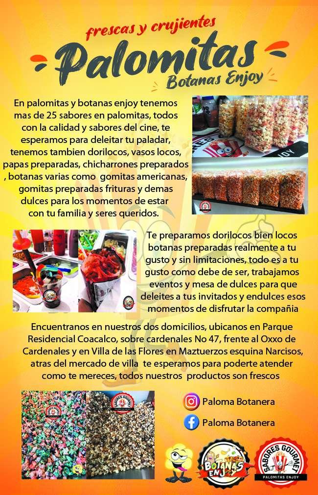 AV. SANCHEZ COLIN Mz 2 CASI ESQUINA IGNACIO ZARAGOZA VILLA DE LAS MANZANAS A 2 MIN DE LA LÓPEZ PORTILLO LUNES - JUEVES 12 A 8PM VIERNES Y SÁBADO 12 A 9PM Haz tu Pedido Palomitas Dliziosas 5539987283 - DEGUSTACIÓN GRATIS - ELABORADAS AL MOMENTO - UTILIZAMOS BOLSA BIODEGRADABLE - PRODUCTO DE 1RA CALIDAD - CASERAS - MÁS DE 26 SABORES Lunes a Viernes Envíanos mensaje vía Whatsapp o nuestras redes sociales. Entregas en Linea 2 del Mexibus o Guadalupe Victoria. Trabajamos sobre Pedido. 10am a 8pm 10am a 4pm Sábados Pasteles Personalizados Cupcakes Gaetas Pastel Japones Fresas con Chocolate Mesas de Dulces 5531080073 Pasteles MAJA TRAGONCITOSMX 32