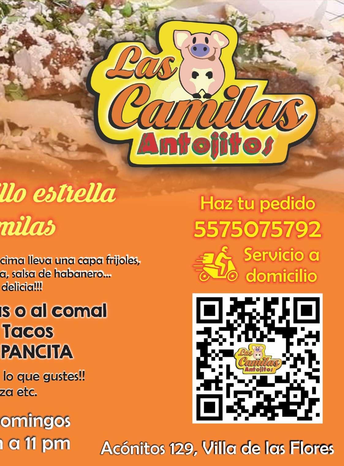 Av. Blvd del Bosques Central, esquina Bosque de Arrallanes Frente a Almacen DICONSA De Jueves a Domingo 6:00 pm a 12:00pm Contáctanos 5541041886 Pancakes Banderillas Dulces y Saladas Sin Aceite Italianas Con Perlas Explosivas Sodas CARNITAS LA VICTORIA A LA LEÑA SABOR Y TRADICIÓN 8 décadas de sabor, nos llevan a la perfección Con cariño y con sabor directo a tu corazón Haz tu pedido 5589605971 5589720863 primaveras #44 parque recidencial c.i i jueves a domingo de 9:30 am a 5:00 pm TRAGONCITOSMX 15