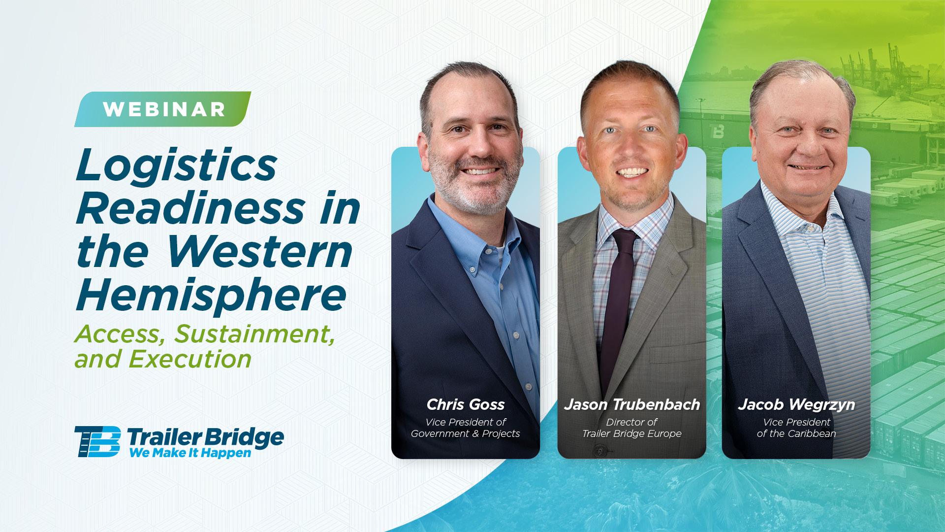 Traielr Bridge hosted a webinar in Q1 focused on ‘Logistics Readiness in the Western Hemisphere’ featuring Chris Goss , Jacob Wegrzyn and Jason Trubenbach