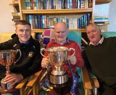 Daniel O Shea, player with Ballymac Junior Team who recently won the All Ireland Jnr Club final with the cup and his Dad Domnic O Shea from Ashill Ballymac meeting his cousin , the legend Derry O Shea of the Mitchels 5 in a Row team and a Kerry Minor in 1962.