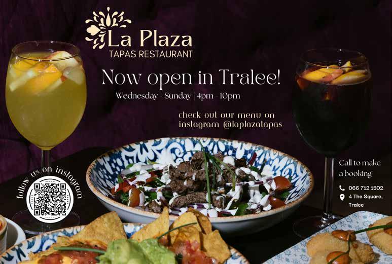 Call Chris or Colette Tel: 066-7126399 or e-mail : traleeadvertiser@gmail.com TRALEE ADVERTISER ADVERTISING Use your Feet, not your Fingers! Shop Local Read ON LINE ww.traleeadvertiser.ie ISSUE NO. 28 VOL.30 ESTABLISHED 1993 Phone 066-7126399 Email: traleeadvertiser@gmail.com FRIDAY 4th August 2023 FREE ...What’s happening in Tralee! Unit 2, Castle Demesne House, Ivy Terrace, Tralee Phone: 066 7122873 | Email: info@kerrydentureclinic.com Web: www.kerrydentureclinic.com • Complete Dentures • Partial Dentures • Immediate Dentures • Denture reline & adjustments • Tooth additions JUST OPENED IN IVY TERRACE Are your Dentures worn, loose or causing discomfort? Call us now on 066-7122873 Open Mon to Sat 9.30-5.30pm Call: 066-7179433 (opp. McDonalds) RATHASS, TRALEE V92 Y2RX Factory Carpets RATHASS DEAL OF THE SUMMER! COLORADO MATTRESS DIVAN SET (incl mattress, base & headboard) 3ft..............only €399 4ft 6in.........only €499 5ft..............only €599 Hurry, limited stocks available 30CELE B R ATING YEARS IN BUSINESS Supporting Tralee! 7 Lower Castle Street, Tralee, Co. Kerry Lunch 12-3pm Mon-Sat | Dinner 3-10pm Daily COME DINE WITH US! Also Home Delivery | Call & Collect Order on JustEat | UberEat | grillandthrill.ie or Call us 066-7117703 Freshly Cooked Every Day TRIED OUR SMOOTHIES, BUBBLE TEAS AND JUICES YET? Beleaf Juice Bar, Castle St Tralee Juice Bar -Lunch -Dinner - 7 Days Family Restaurant! Maine St, Tralee | 066-7106300 www.theashehotel.ie Ciss O Connor... RIP... See p.10