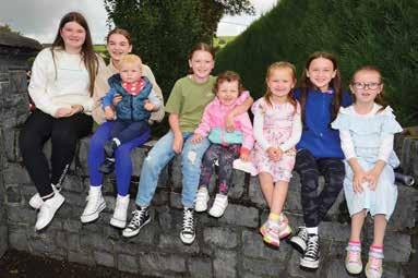 ABOVE: Sitting on Ó Riada’s Bar Restaurant, wall to watch the parade of Vintage cars and 50 Honda’s pass by before the start of Ballymacelligott Vintage Club, 13th Annual Car and Honda 50 Run on Sunday, from left Aife Reidy, Ruby Walmsley, Odhran O’Leary, Amelia O’Sullivan Sadie O’Sullivan, Mia Russell, Isabel Walmsley, Freya Russell.