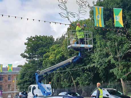 A busy electrician Sean Murphy at Denny St.Tralee on Sunday morning as preparations are been made for the Rose of Tralee Festival.Photo Moss Joe Browne.