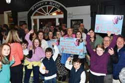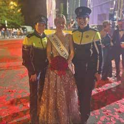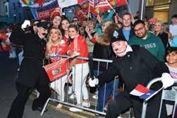 ABOVE: Zoe Boyle, Rose Bud of 2023 has the full support of family and friends outside Benners Hotel on Saturday night as the Rose Parade passes by