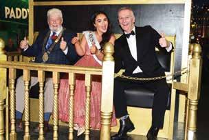 ABOVE: Keeping the beat on the Street as they lead the Roses in Tralee Rose Parade on Saturday’s night, The Mayor of Tralee Cllr. Johnny Wall, The Rose of Tralee Rachel Duffy and joint Host on the Rose of Tralee TV Dáithí Ó Sé.