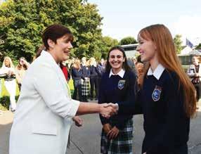 ABOVE: The Minister of Education Cllr. Norma Foley, formally a teacher at Presentation Secondary School Tralee, before becoming a Minister pictured with two head girls at the school Maiya Rivas McHugh and Olivia Dillon whose job was to guide the Minister on Friday through the school.