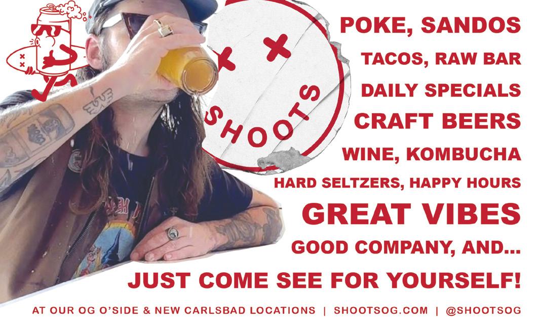 prepared behind the bar by your bartender. There’s no place like this in Oceanside, or even all of North County. Be sure to tip your bartender well—they’re pouring beers, frying french fries, grilling burgers, running food, and bussing tables—the whole nine.