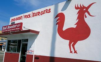 The main goal is to keep the Rooster in its OG state. That meant their first order of business was to get rid of the landscape mural on the outside of the bar and bring back the giant red rooster.