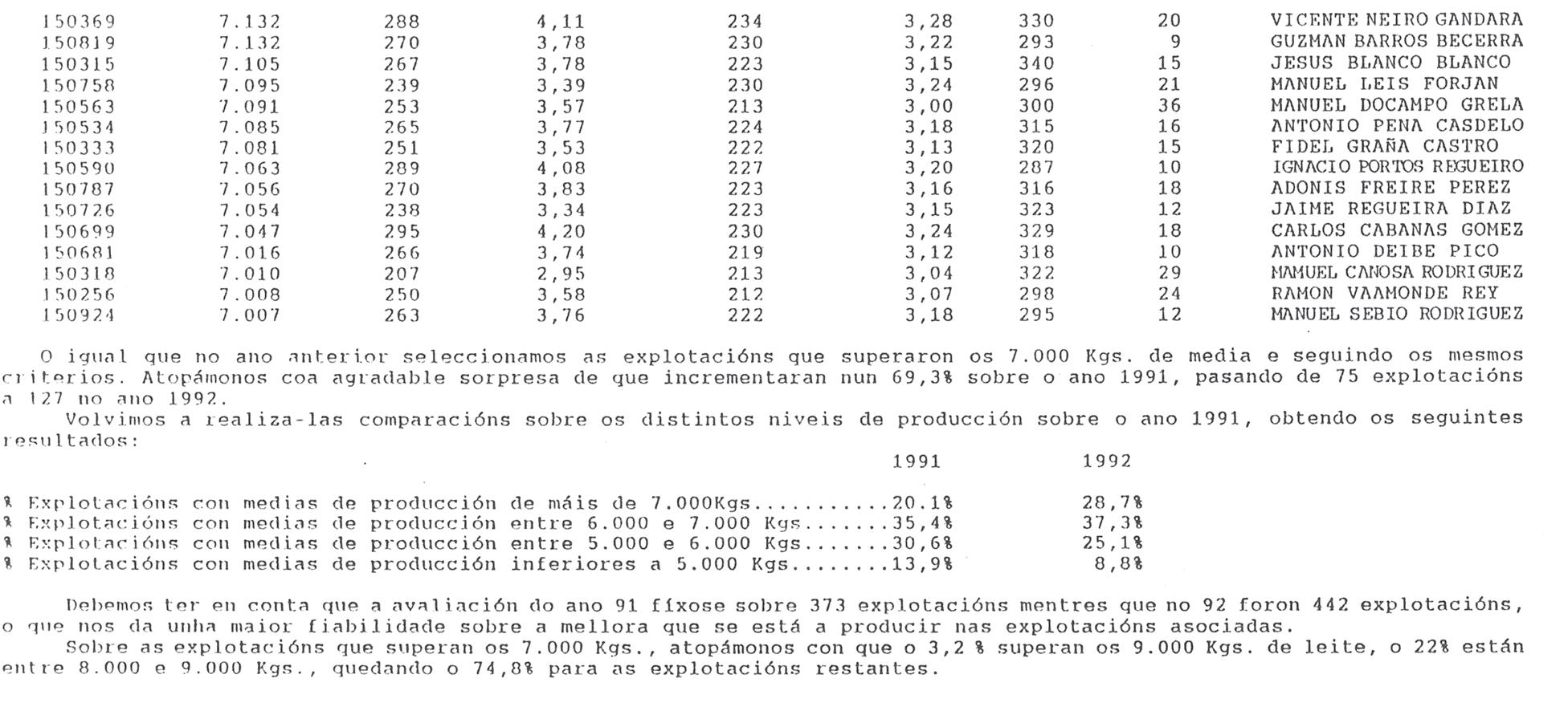 Antes de finalizar, e por ser este un número especial, nas primeiras páxinas que seguen ofrecémosvos un extracto do que foron algúns dos datos máis salientables da nosa primeira Memoria correspondente aos datos do Control Leiteiro do ano 1992