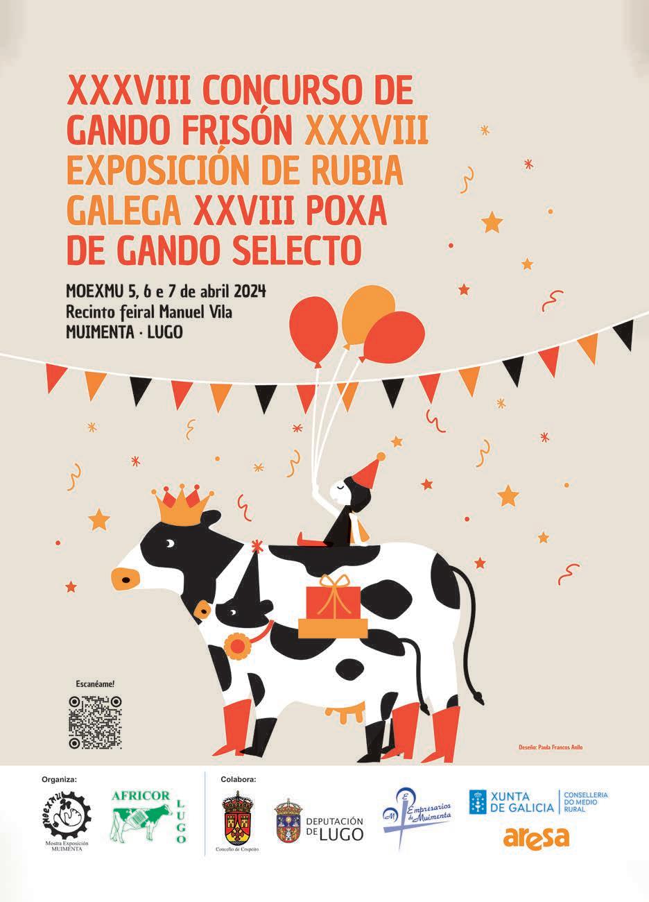 Os vindeiros 5, 6 e 7 de abril, o Concurso de Gando Frisón, a Exposición de Raza Rubia Galega e a Poxa de Gando Selecto constituirán un importante referente da Mostra Exposición de Muimenta. Estos certames, non solo serven para potenciar un dos sectores económicos máis importantes do Concello de Cospeito, en particular, e da Terra Chá Lucense en xeral, senón tamén para ver ás últimas innovacións e tecnoloxías existentes no mercado.