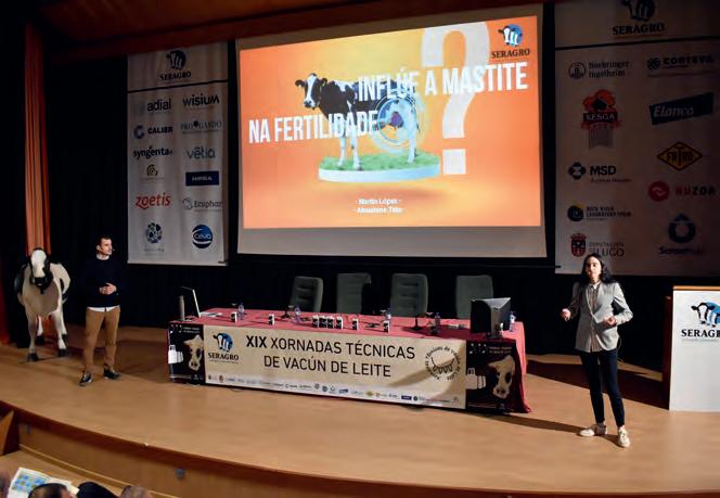 quien habló de los puntos críticos en las diarreas en animales neonatos. A continuación, Antonio Souto, de Hipra, y Pilar Aira, de Xundeva, abordaron la rentabilidad de vacunar frente a la mastitis. La última exposición fue la de Carlos Carbonell, de MSD, y Bárbara Fernández, de Xundeva, que se centró en aspectos relacionados con el manejo de la recría. Al nal del día hubo un acto de clausura y una comida.