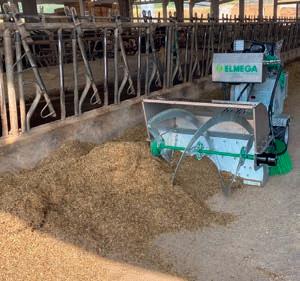 Emplean un Lely Juno para arrimar la comida Jesús Blanco, socio de Granxa Xustás, y Juan Alonso, técnico de Agrotec Entrecanales