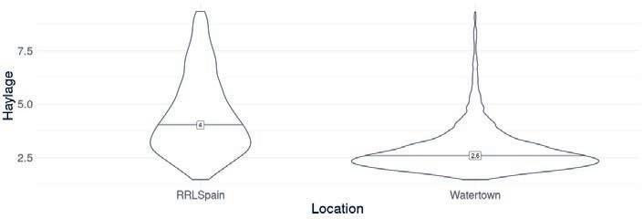 Con la sala convencional, la media de producción rondaba los 35-36 litros por vaca y día, por tanto, el incremento es considerable: desde el montaje de los Lely Astronaut A4 su producción ha aumentado en 10 litros diarios por animal, debido a la subida del número de ordeños.