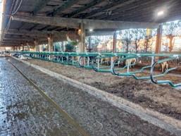 Esta explotación se distribuye en dos parques diferenciados, tal y como nos explica Juan Alonso, técnico de Agrotec Entrecanales. En uno de ellos se sitúa uno de los dos Lely A4, en una zona que cuenta con 84 cubículos que se distribuyen entre vacas en lactación y vacas secas, y que también se usa como zona de preparto. Estas últimas, una vez paridas, pasan al robot y, después de 100 días aproximadamente, se mueven al segundo parque.