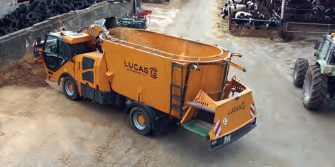 Cinta de descarga bilateral y cadenas en acero inox Cabina con ventilación y calefacción, volante y asiento ajustables, vista panorámica 360 º y mandos ergonómicos