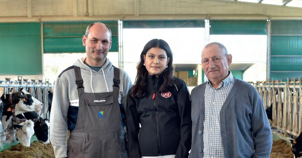 se lastimen y es muy eficaz en todos los sentidos”, destaca. “Además, desde su instalación hemos reducido el tiempo de ordeño a la mitad y hemos podido seguir creciendo”. En la actualidad, cuentan con 300 cabezas, 170 en ordeño, produciendo una media de 41 litros/vaca/día, con unos porcentajes del 3,90 % de grasa y del 3,45 % de proteína.