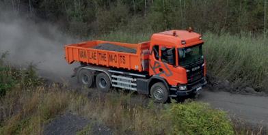 Volvo Trucks s’est déplacé à Boussu avec un FMX 6x4, un tridem FMX 8x4 avec grue et un tridem FH 8x4. Les trois véhicules étaient dotés d’un système lève-conteneur à cro chet. Les camions sont toujours équipés de rétroviseurs extérieurs classiques, mais les FH, FM et FMX peuvent comporter une ca méra d’angle mort supplémentaire qui sur veille le flanc et l’avant du véhicule. Scania a présenté à Boussu trois G500 6x4 XT. Le XT - Extra Tough - est une version
