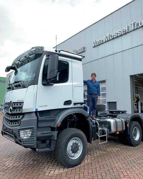 caméra plus courts qui offrent une meilleure vue et rendent les caméras moins vulné rables. Le véhicule était un Arocs 3351 HAD, un combiné benne-tracteur à double usage avec entraînement hydraulique temporaire des roues avant. Le deuxième véhicule était un Arocs 3348 avec un bras porte-conte neur. Le troisième Arocs était un 8x4 avec un essieu arrière directeur.
